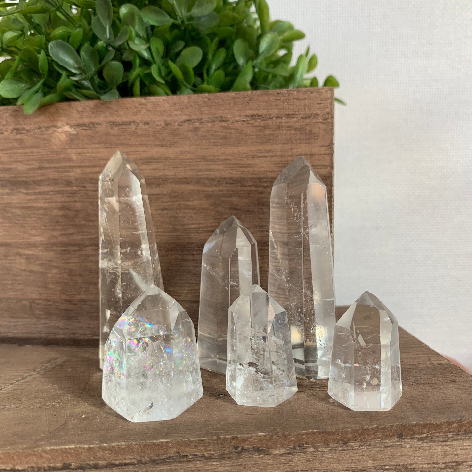 These grade AAA clear quartz towers are lovely and most have rainbows and gorgeous faces and points.