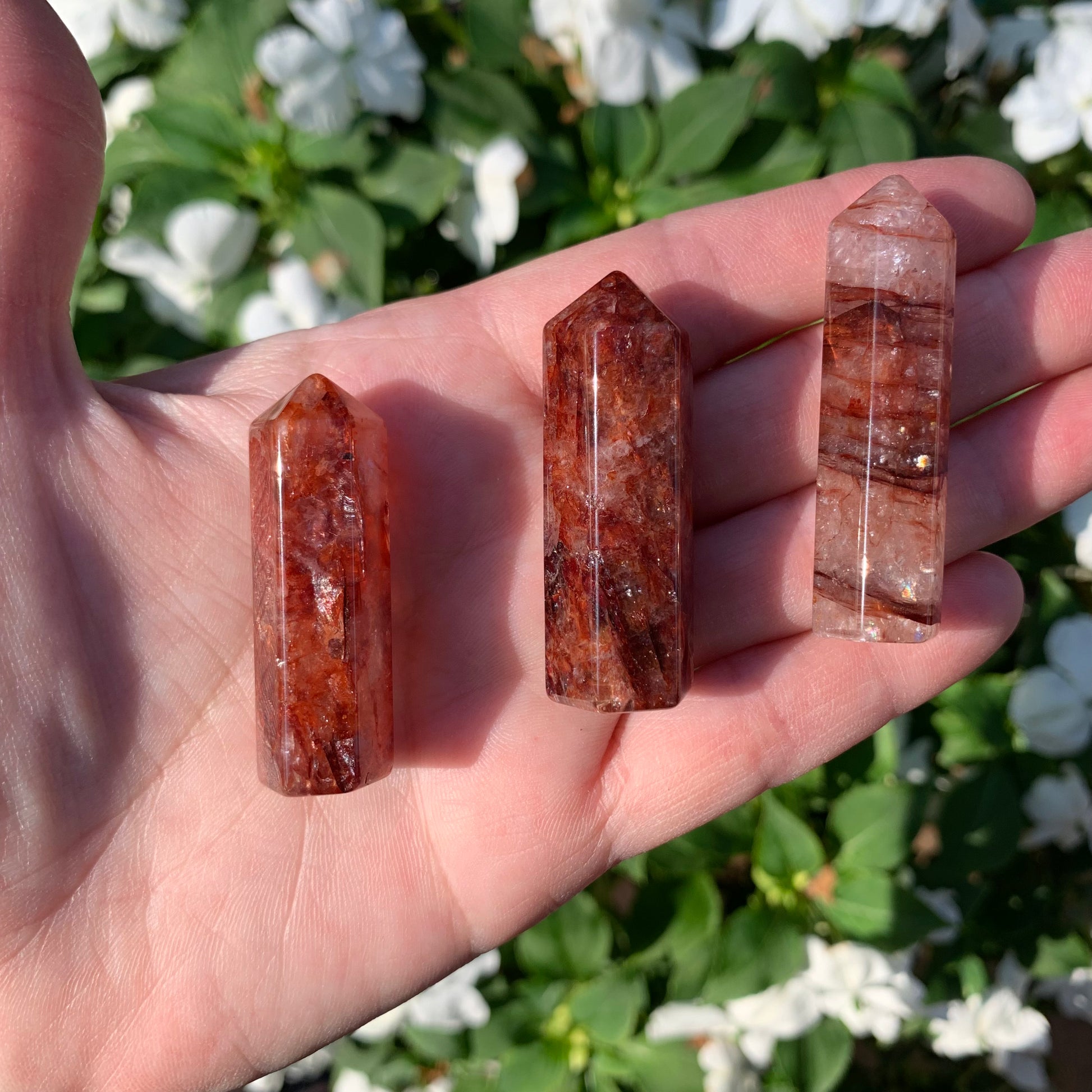 We are in love with these adorable mini Fire Quartz Towers. They are tiny but sure have amazing clarity, definition and depth of color! Approx. 1.75" h