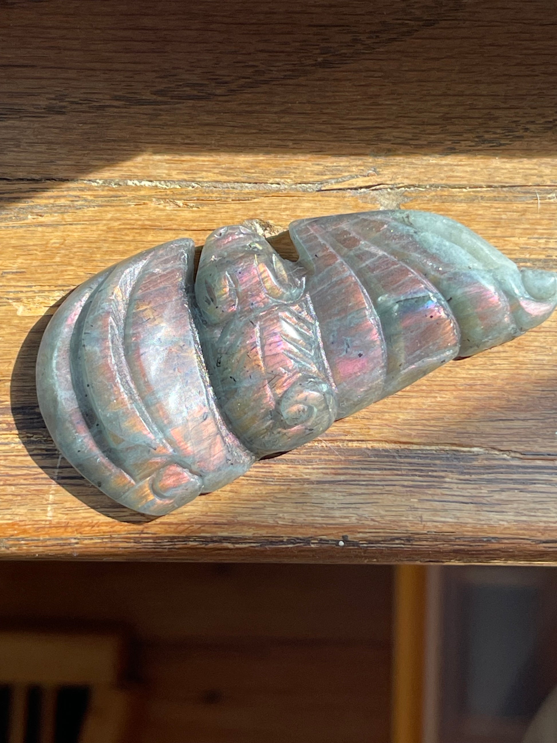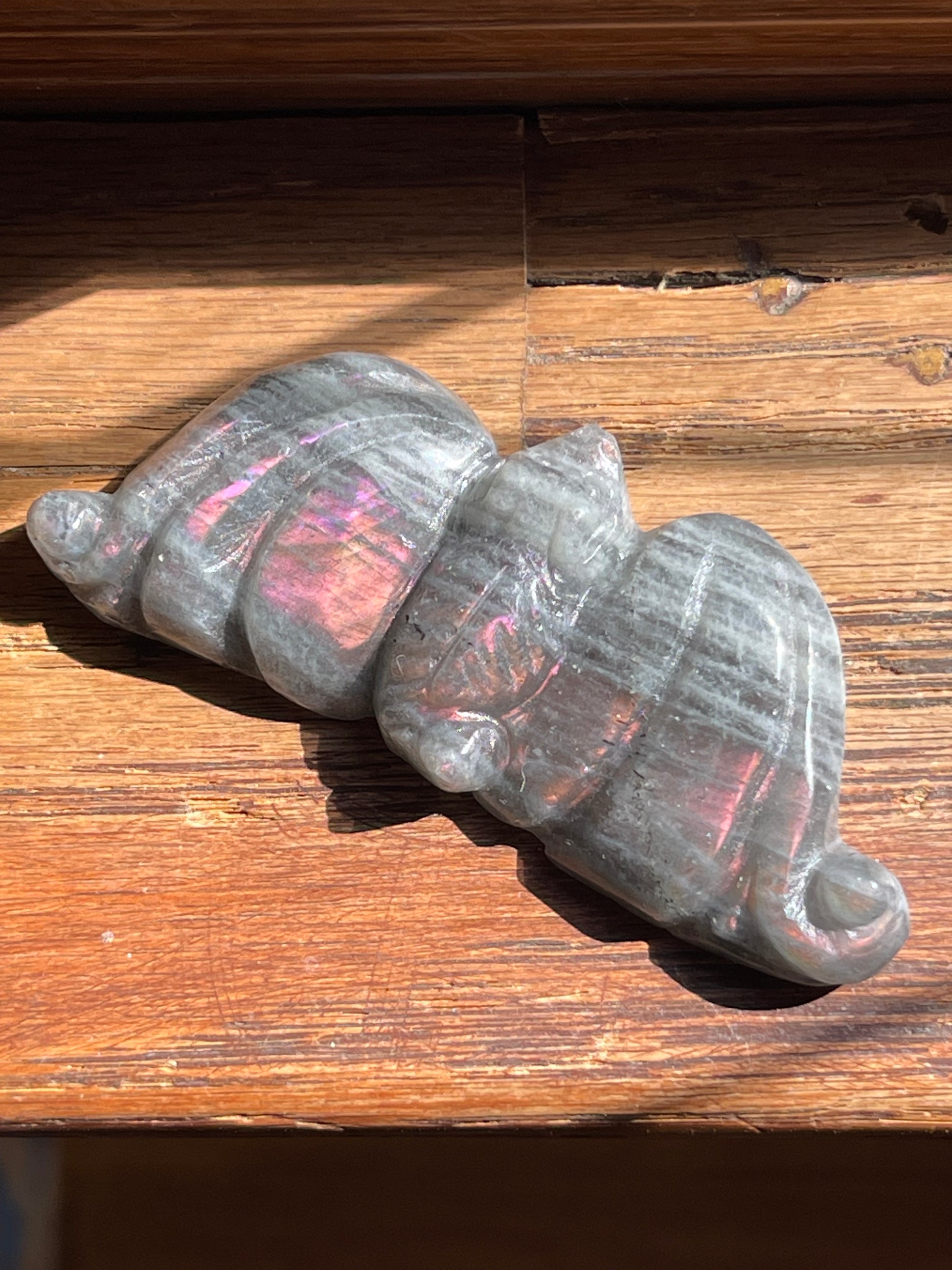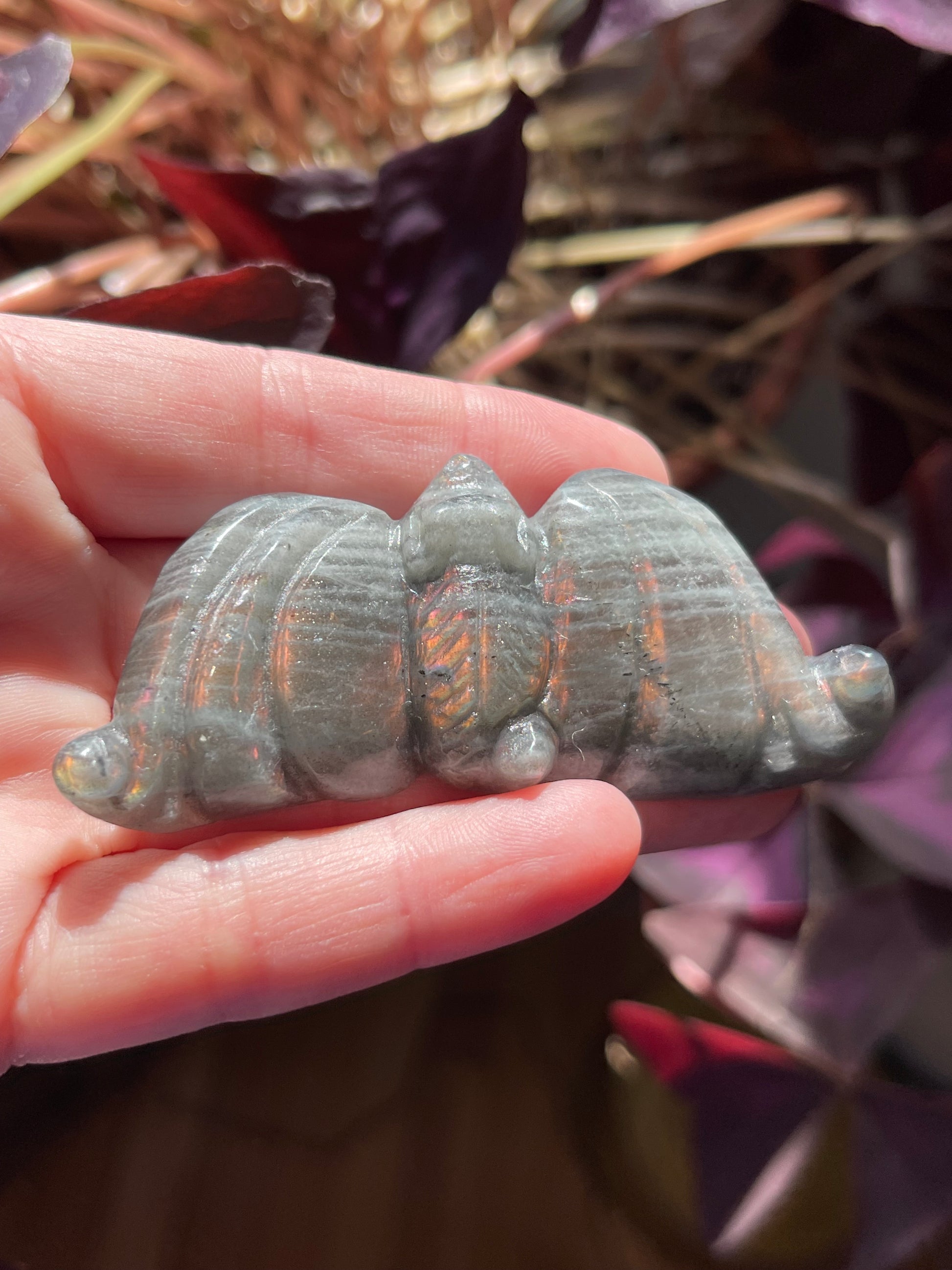 Mini Labradorite Bats with Orange and Purple Flash // Hand-Carved