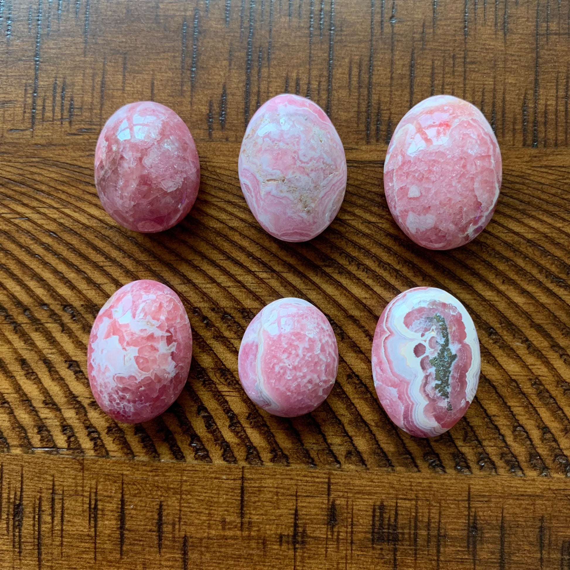We are in love with these amazing mini Rhodochrosite Palm Stones from Argentina. They are so gemmy and adorable. They are so puffy and sweet--you will want to carry these in your pocket. All are approx. 1.25" - 1.50" h.