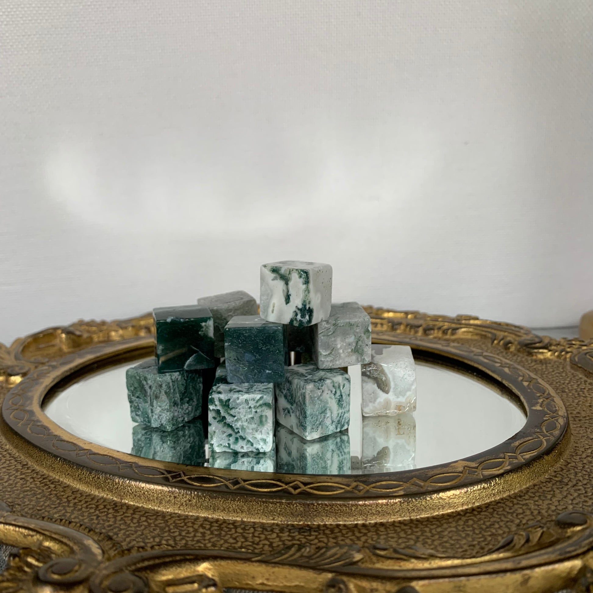 Cubes are a nice alternative to a tumble. We love Moss Agate because each are so unique in coloring and texture.