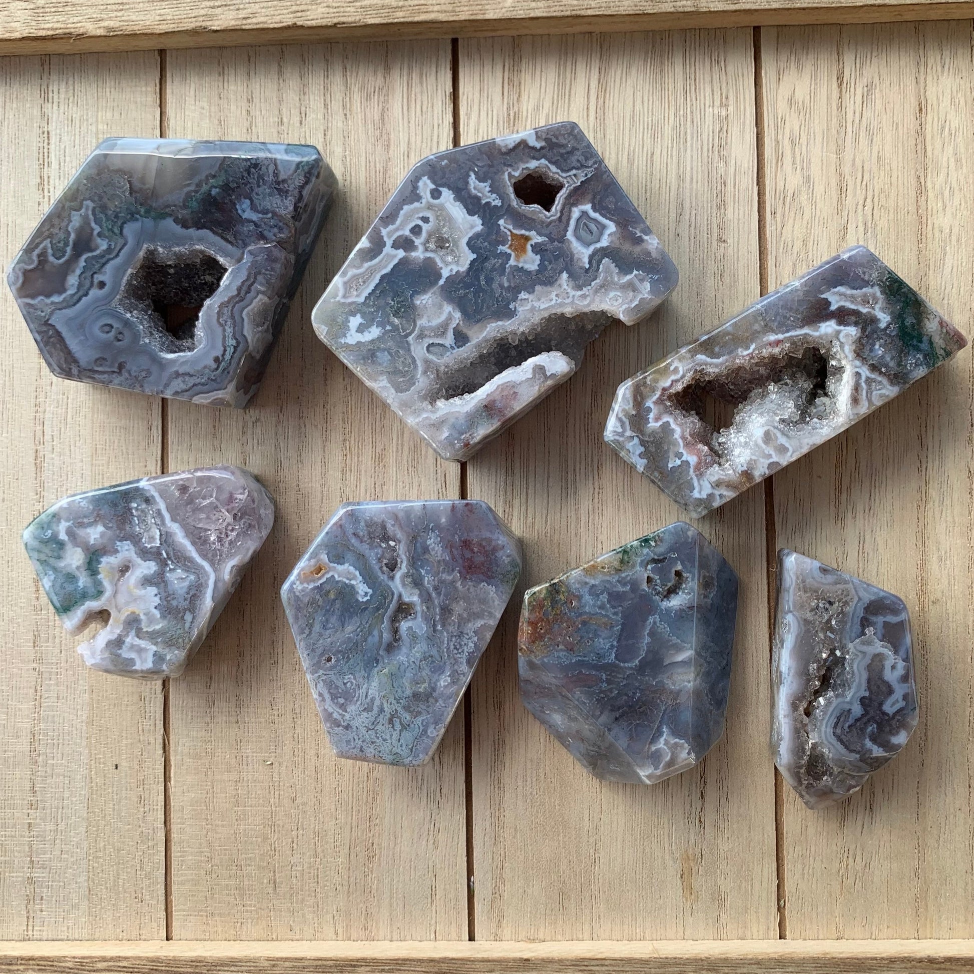 These polished Moss Agate Freeforms are so nice and have gorgeous sparkle and druzy. We love the variation in sizes, saturation and translucency. You won't be disappointed!