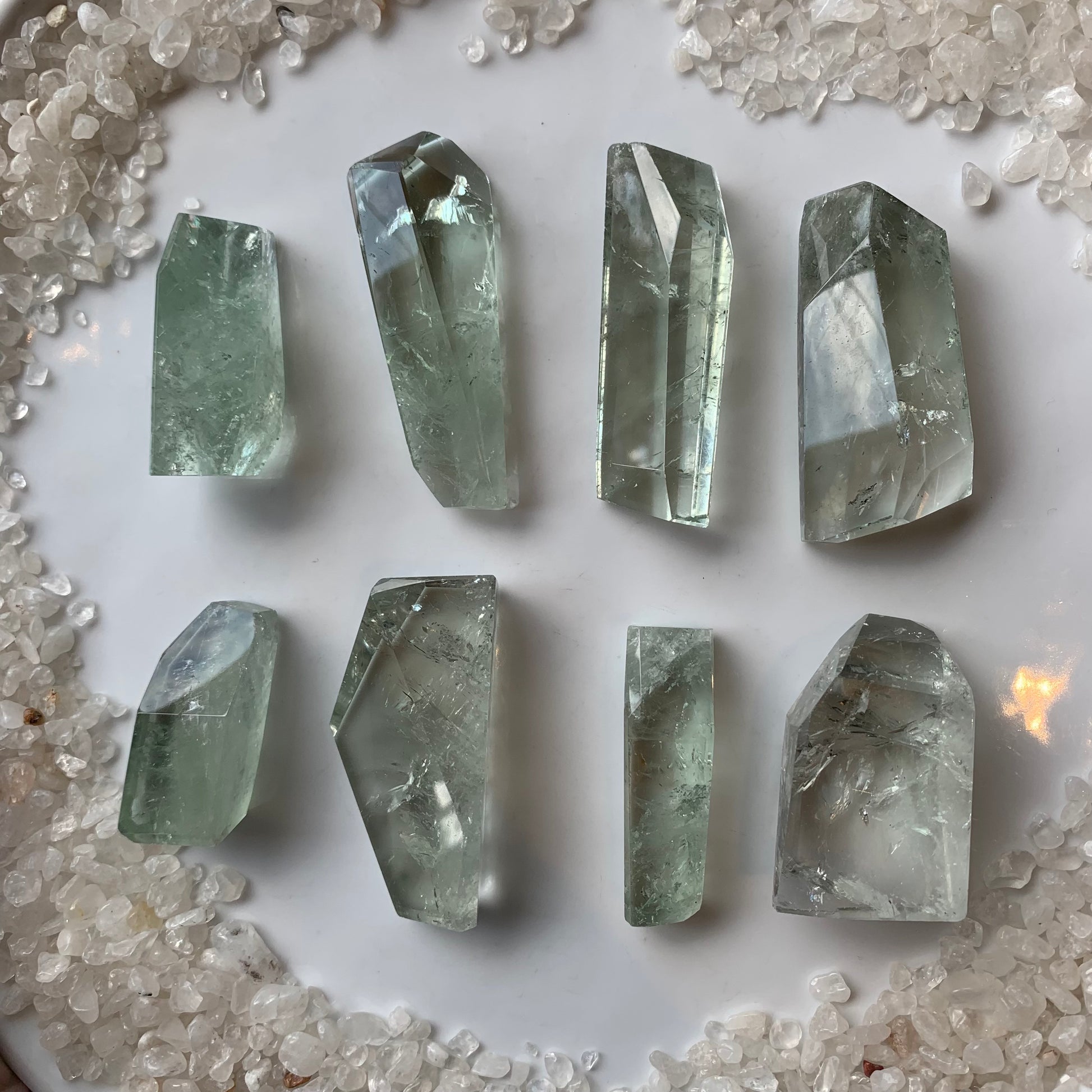 These freeforms are amazing and have gorgeous clarity, fingerprints and rainbows. They range in color saturation and have not been color corrected.