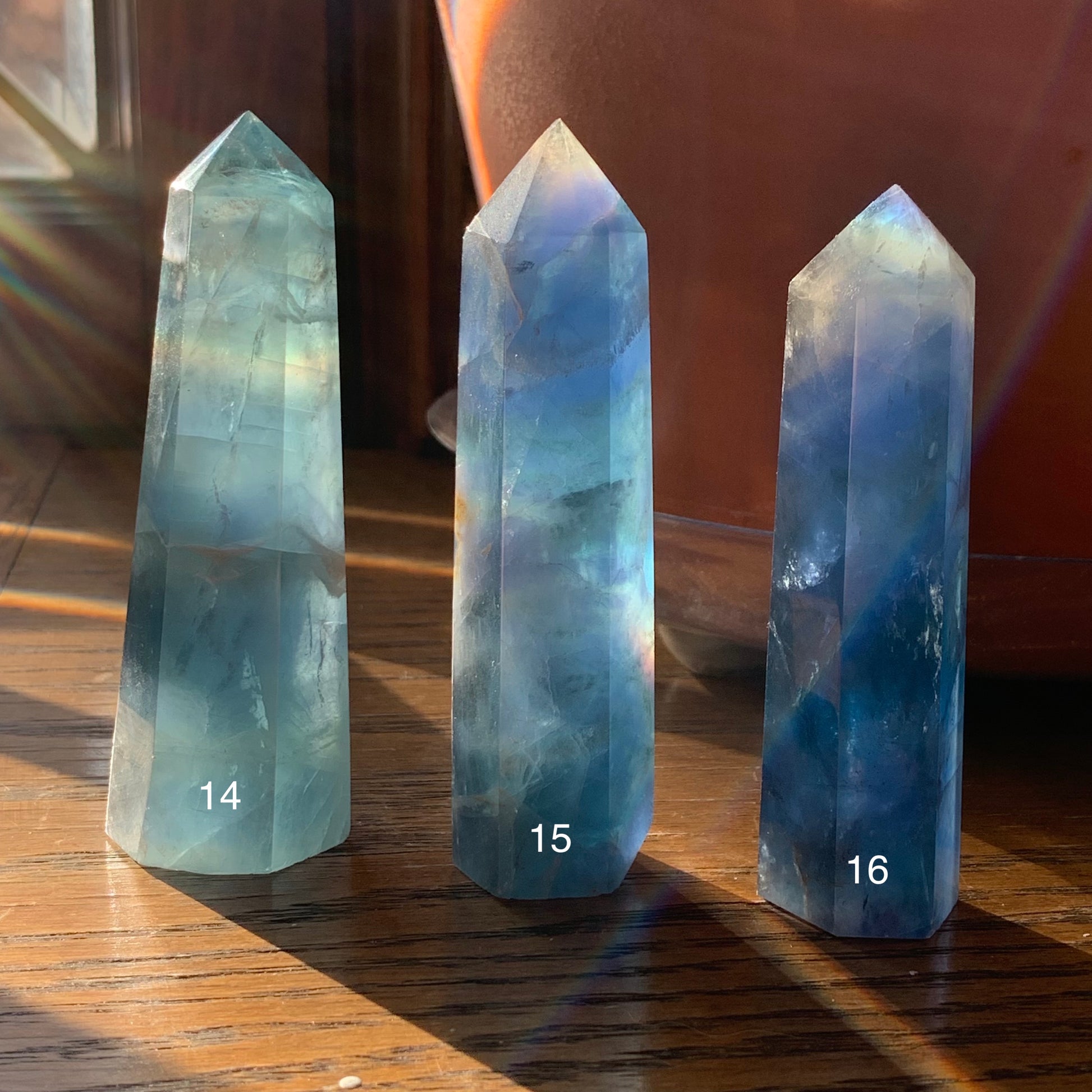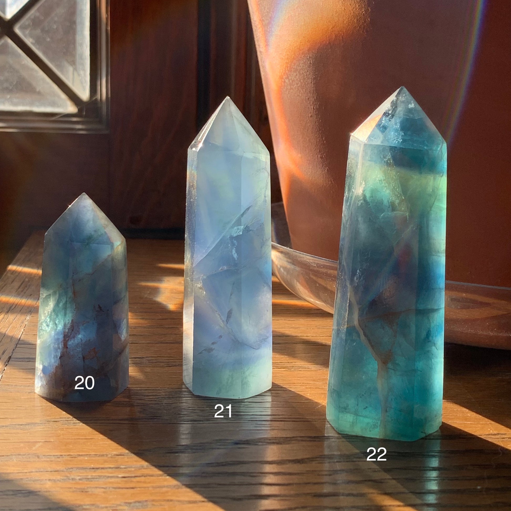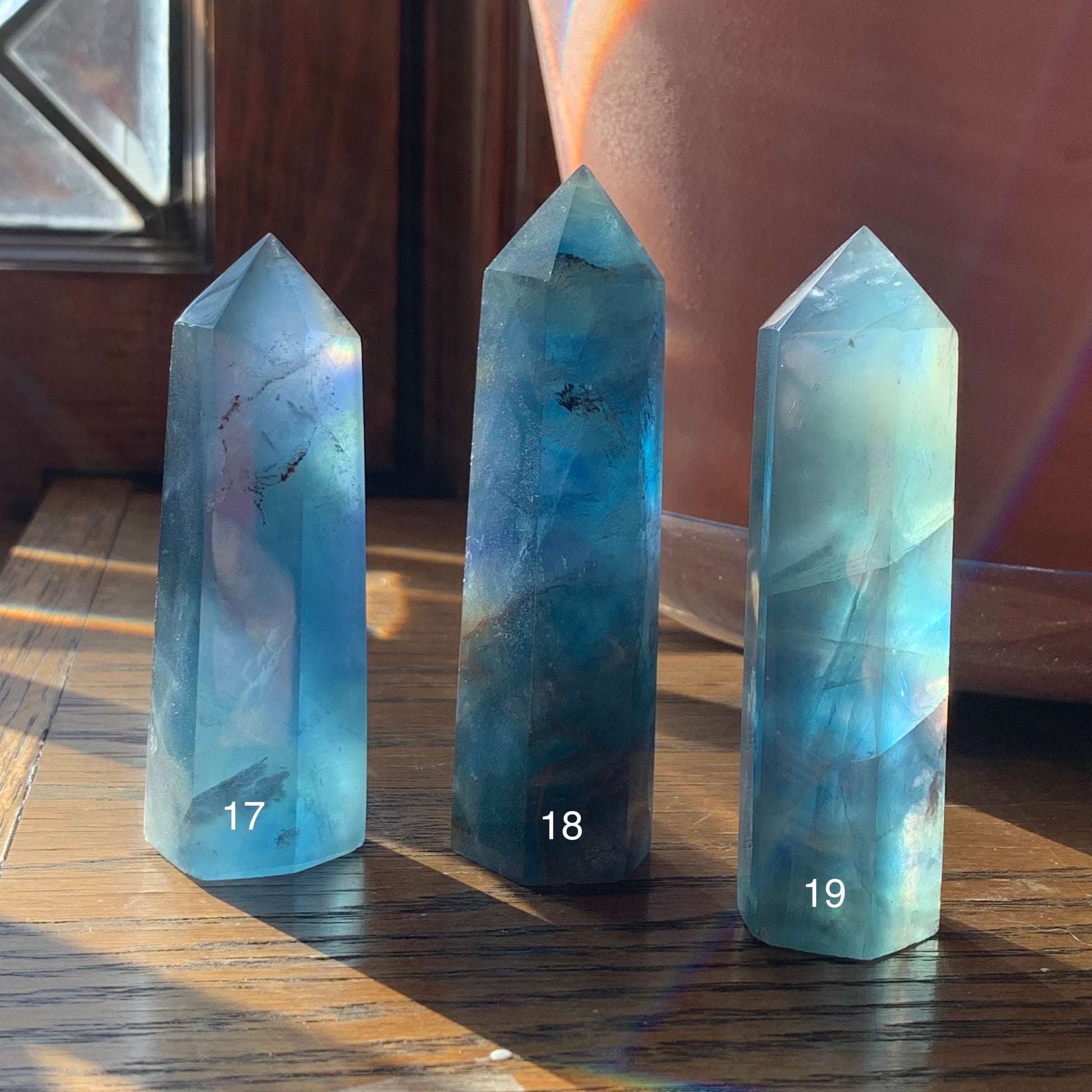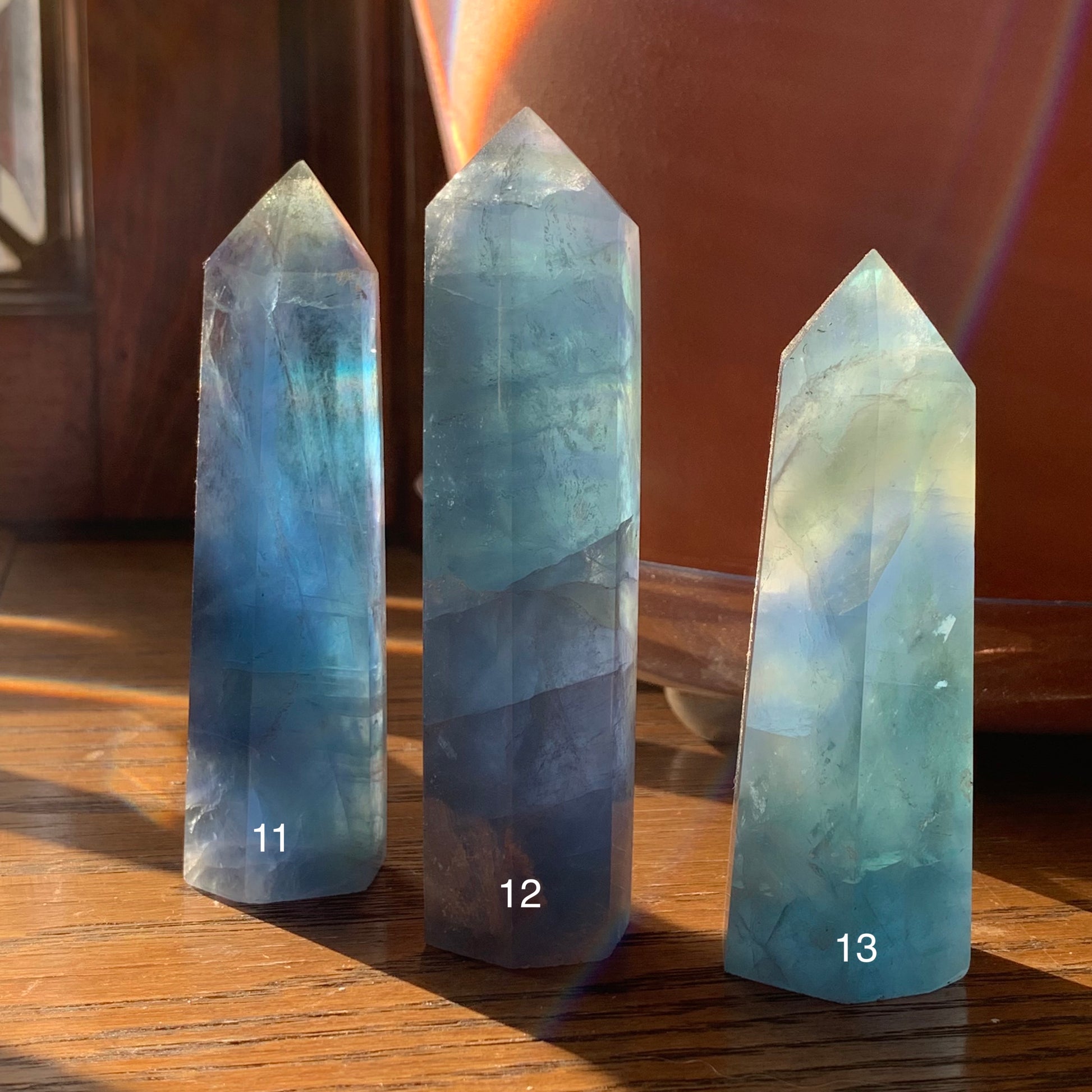 Ocean Blue Fluorite Towers with Inclusions // Dendrites + Golden Healer