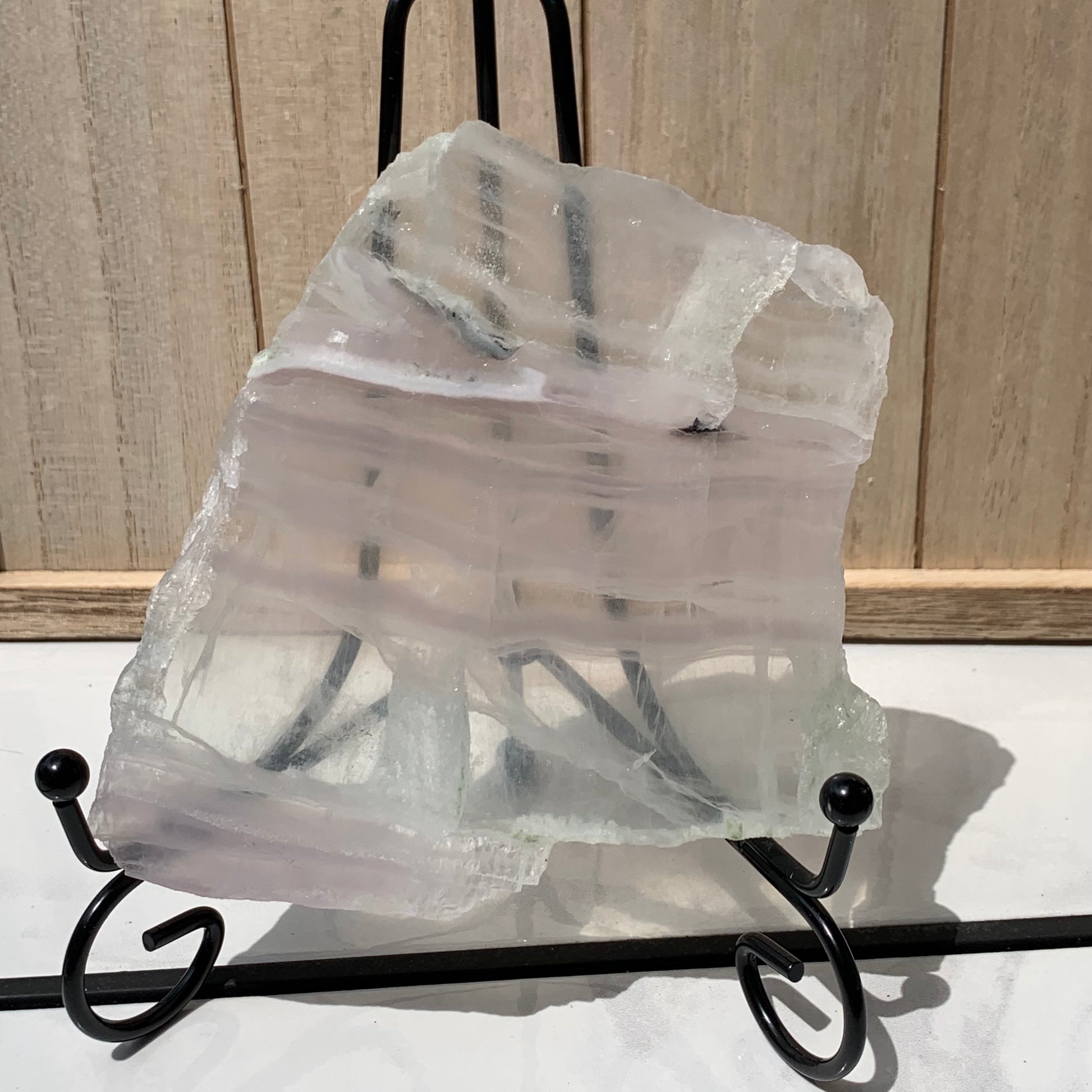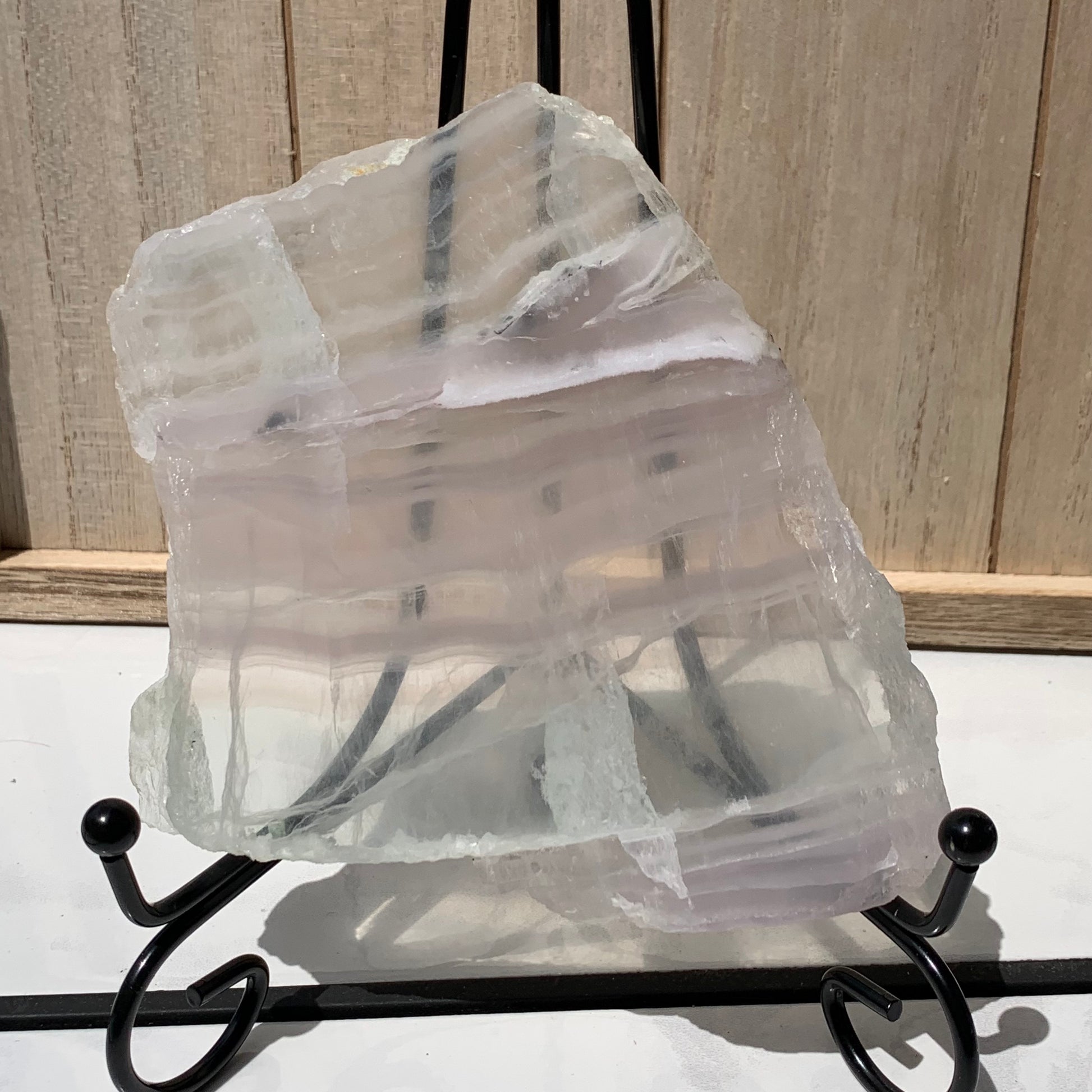 These Pastel Lavender and Green Fluorite slabs are so amazing. They can be displayed as a decorative item or used as a base for an altar or a base for a candle.