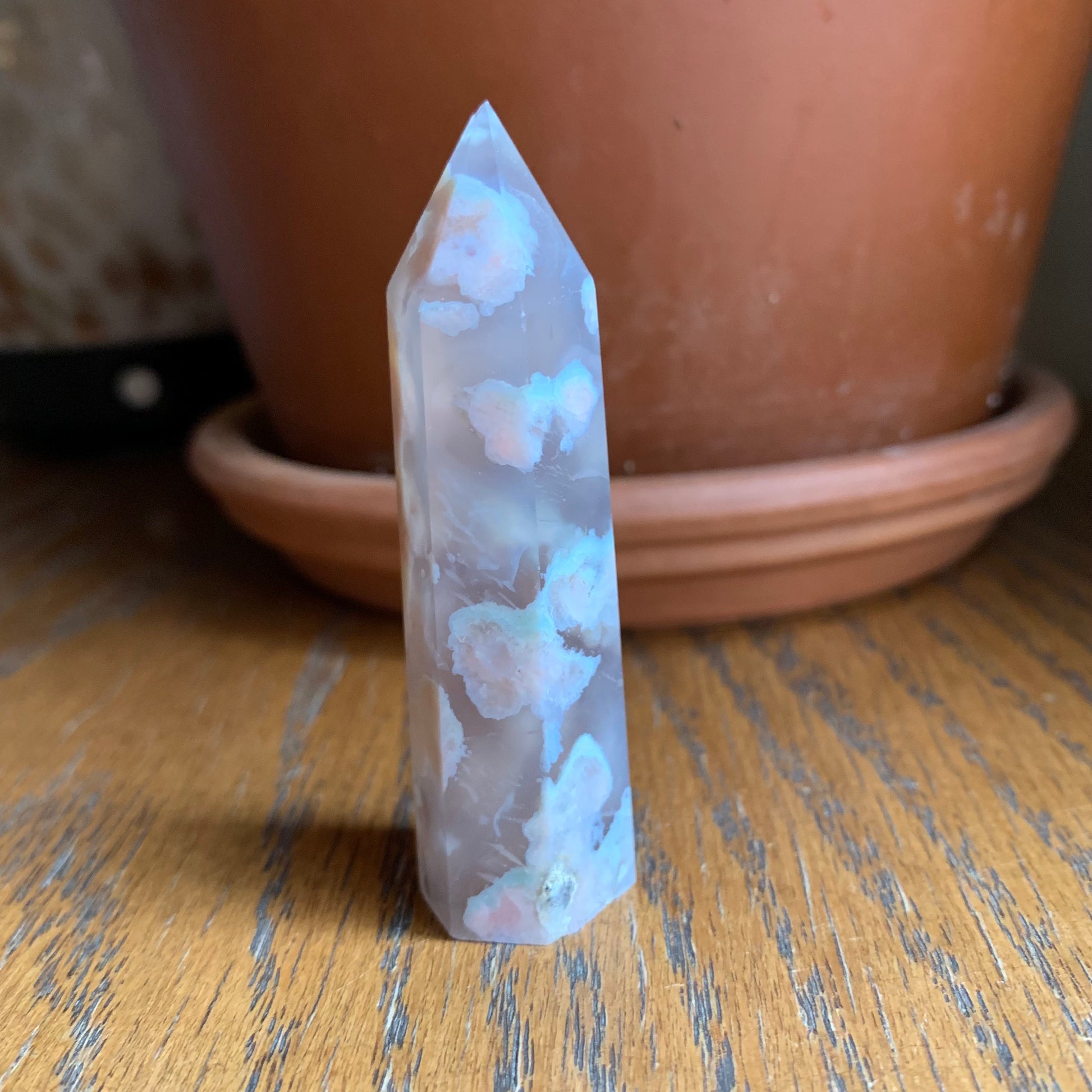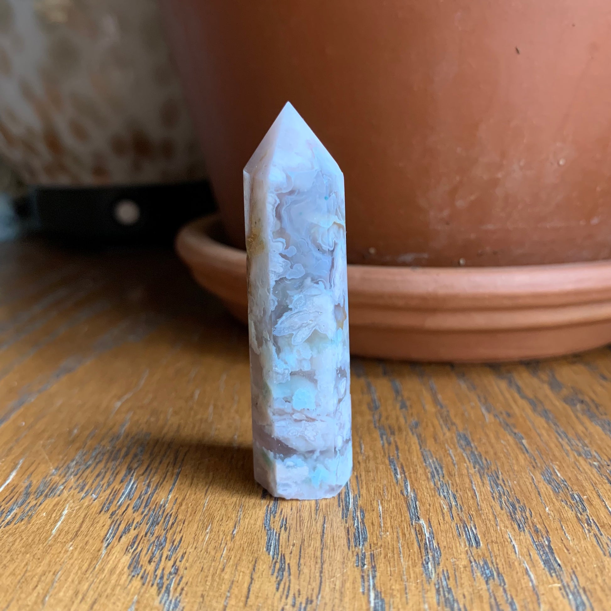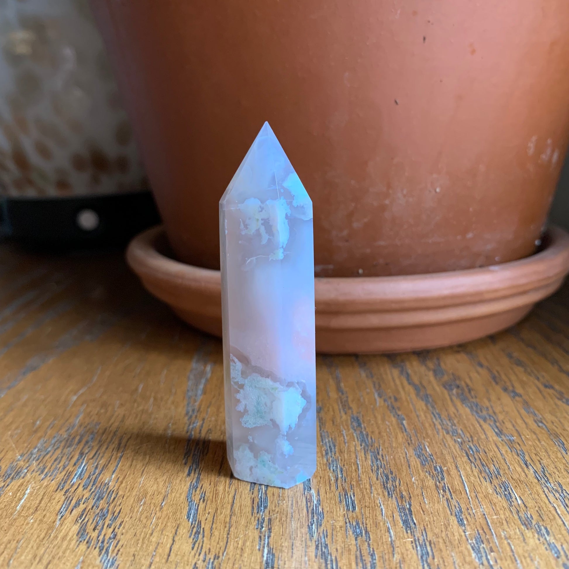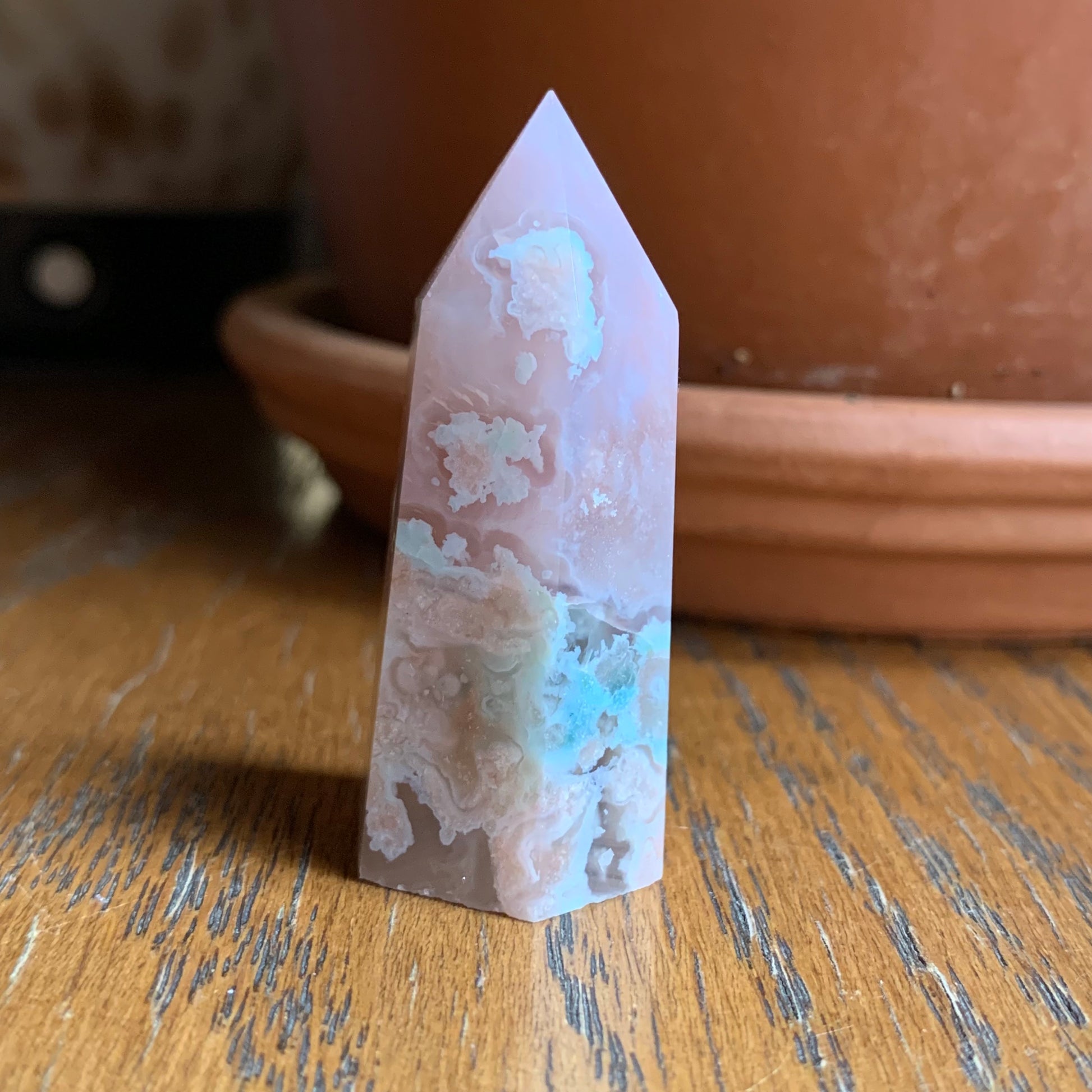 These Petite Lil Cutie Pink + Green Flower Agate Towers are so sweet and filled with amazing detail. They are so lovely and feminine, just the right size for a new collector or to add to your collection. They will fit so perfectly on a little windowsill or in a shadowbox.