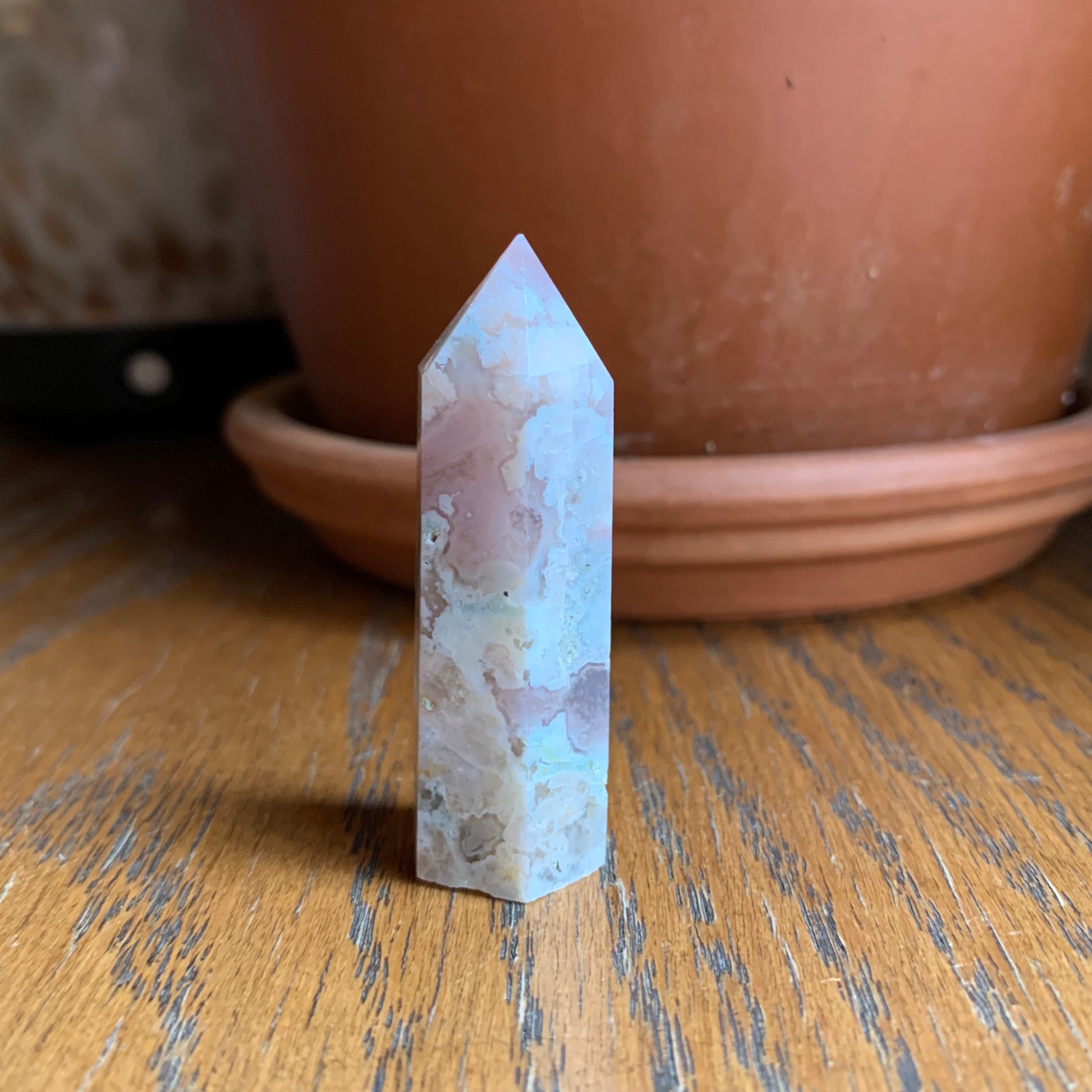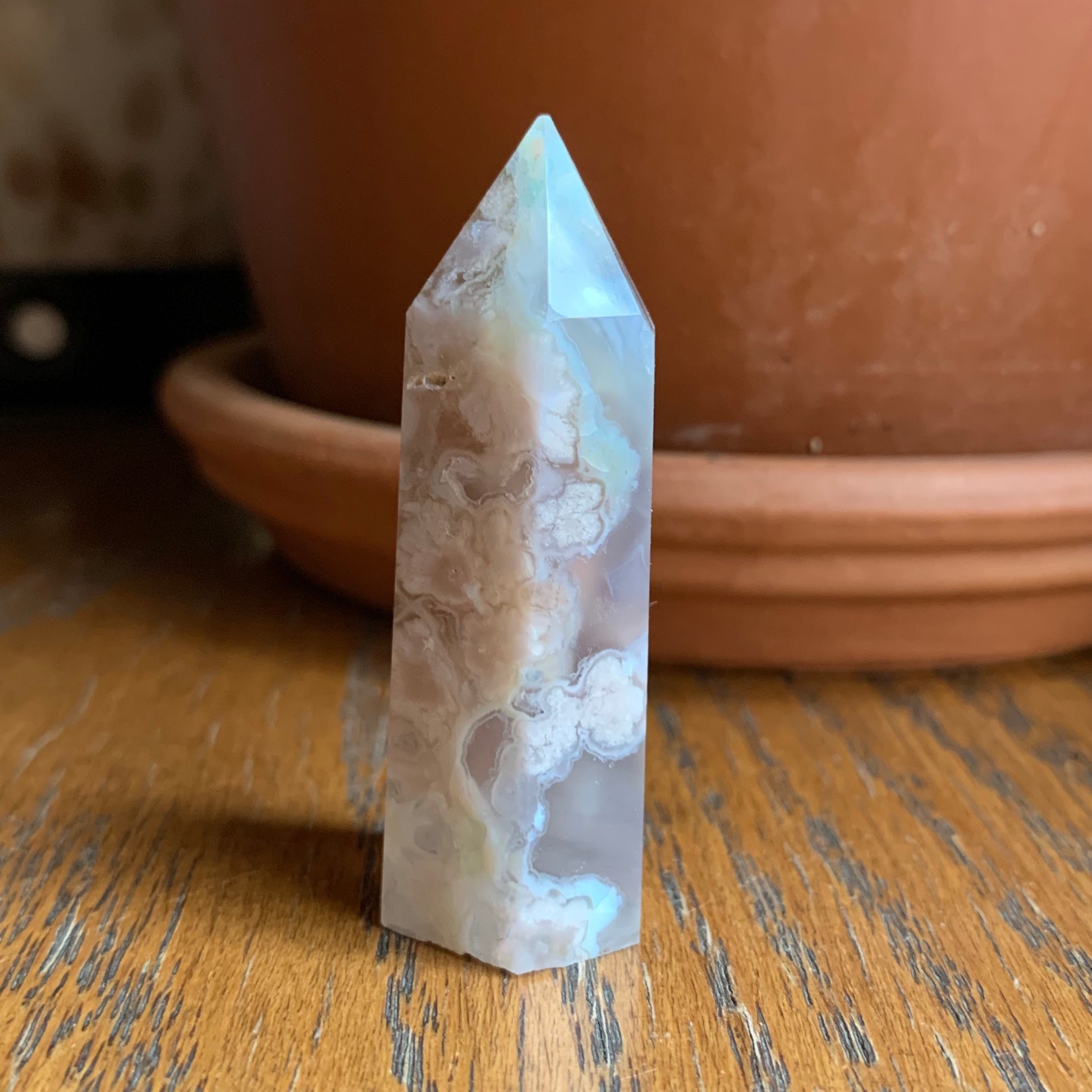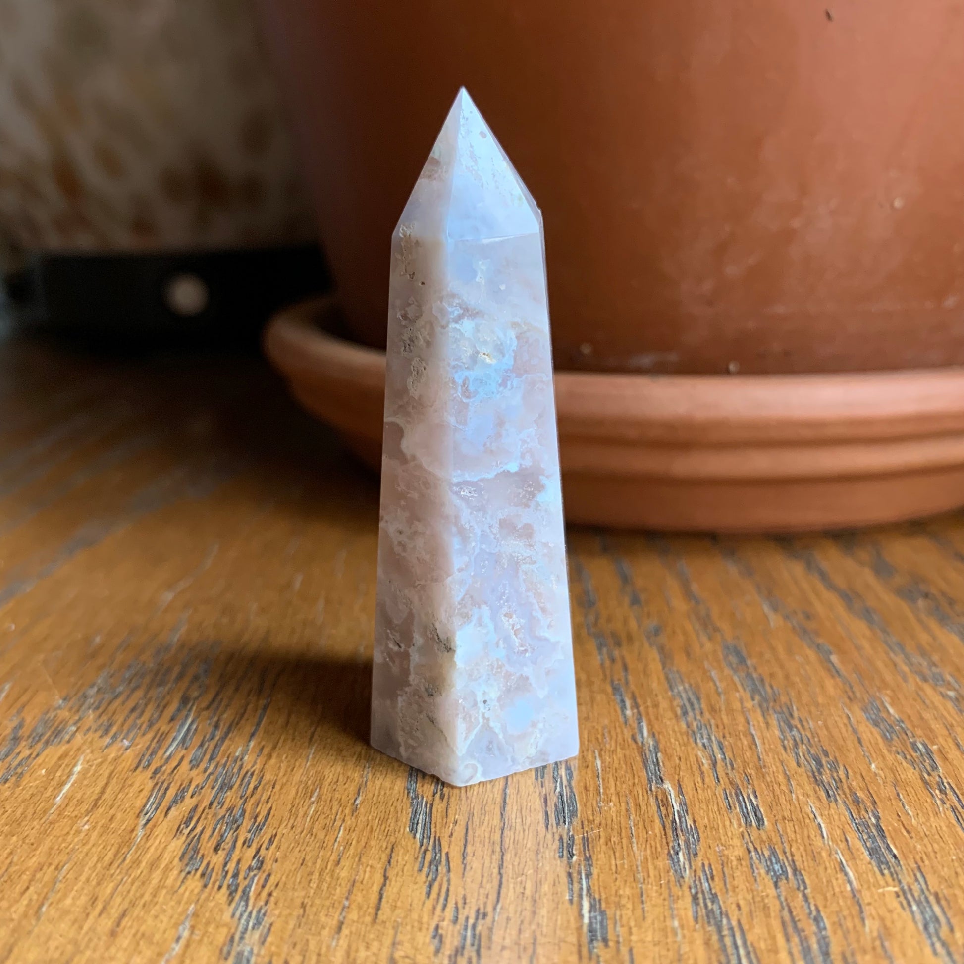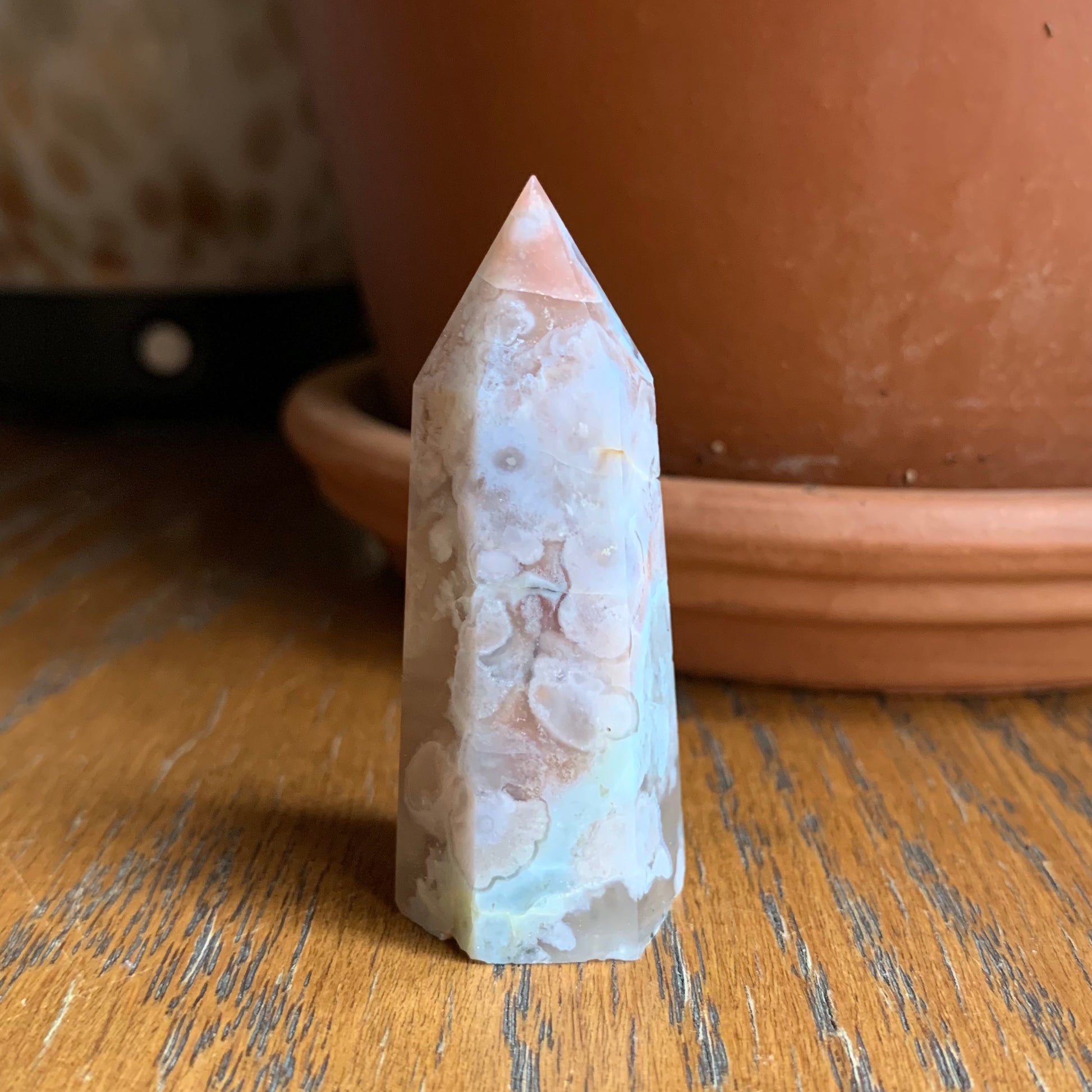 These Petite Lil Cutie Pink + Green Flower Agate Towers are so sweet and filled with amazing detail. They are so lovely and feminine, just the right size for a new collector or to add to your collection. They will fit so perfectly on a little windowsill or in a shadowbox.