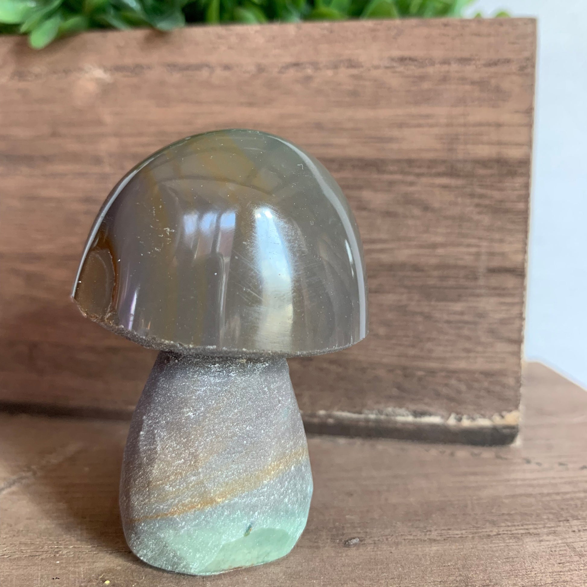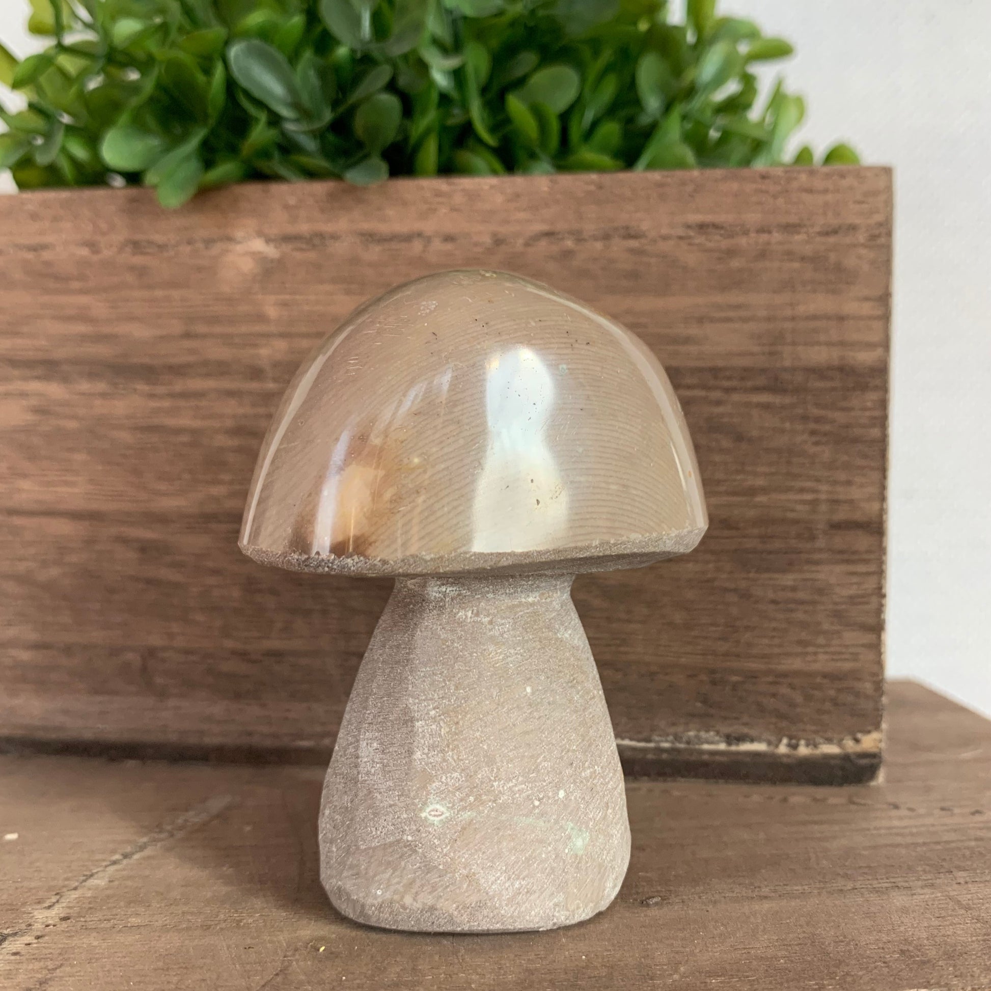 These mushrooms are approx. 2.5" h and have polished caps and unpolished bases.