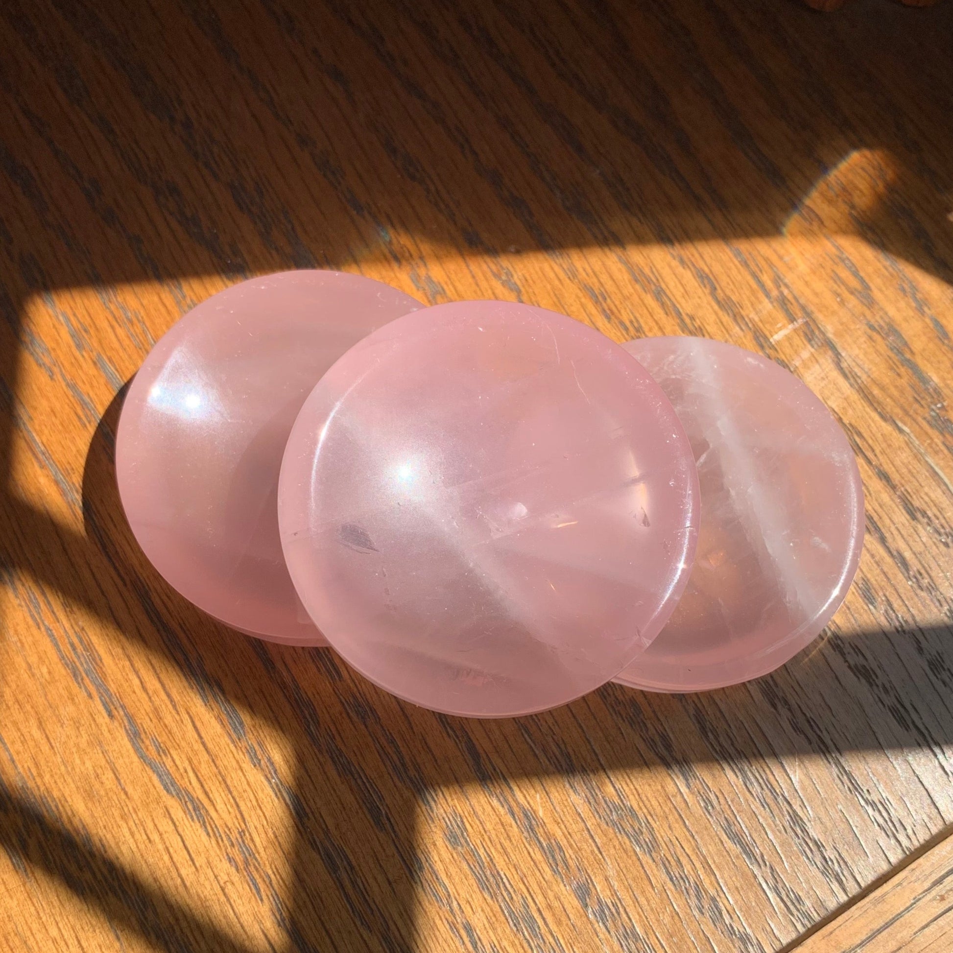 These gorgeous Rose Quartz Mini Bowls are so cute--they'd be perfect for an altar or a candle. Each of them have their own properties, whether it's clarity, rainbows, asterisms...either way, they are all gorgeous. They are all approx. 2" wide.