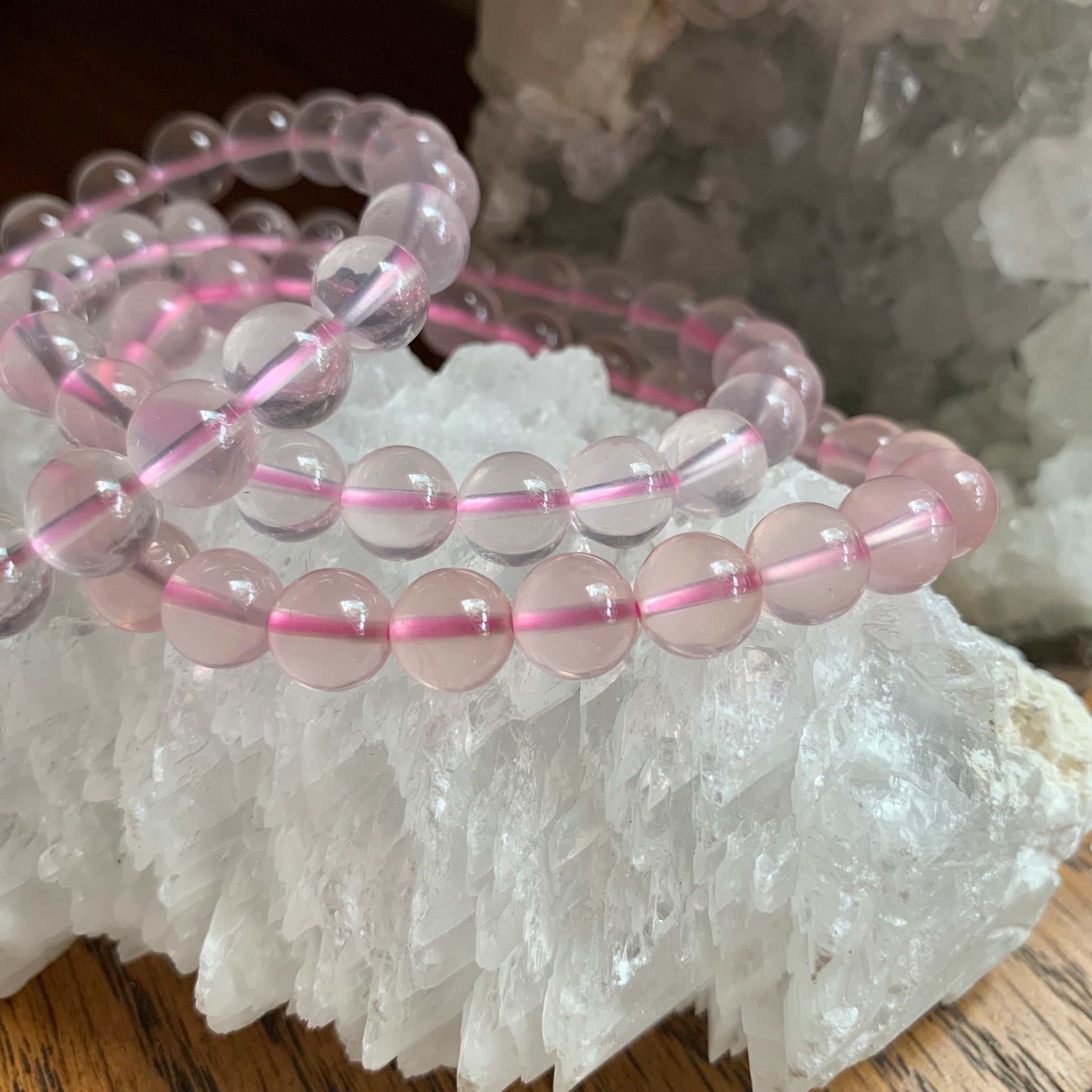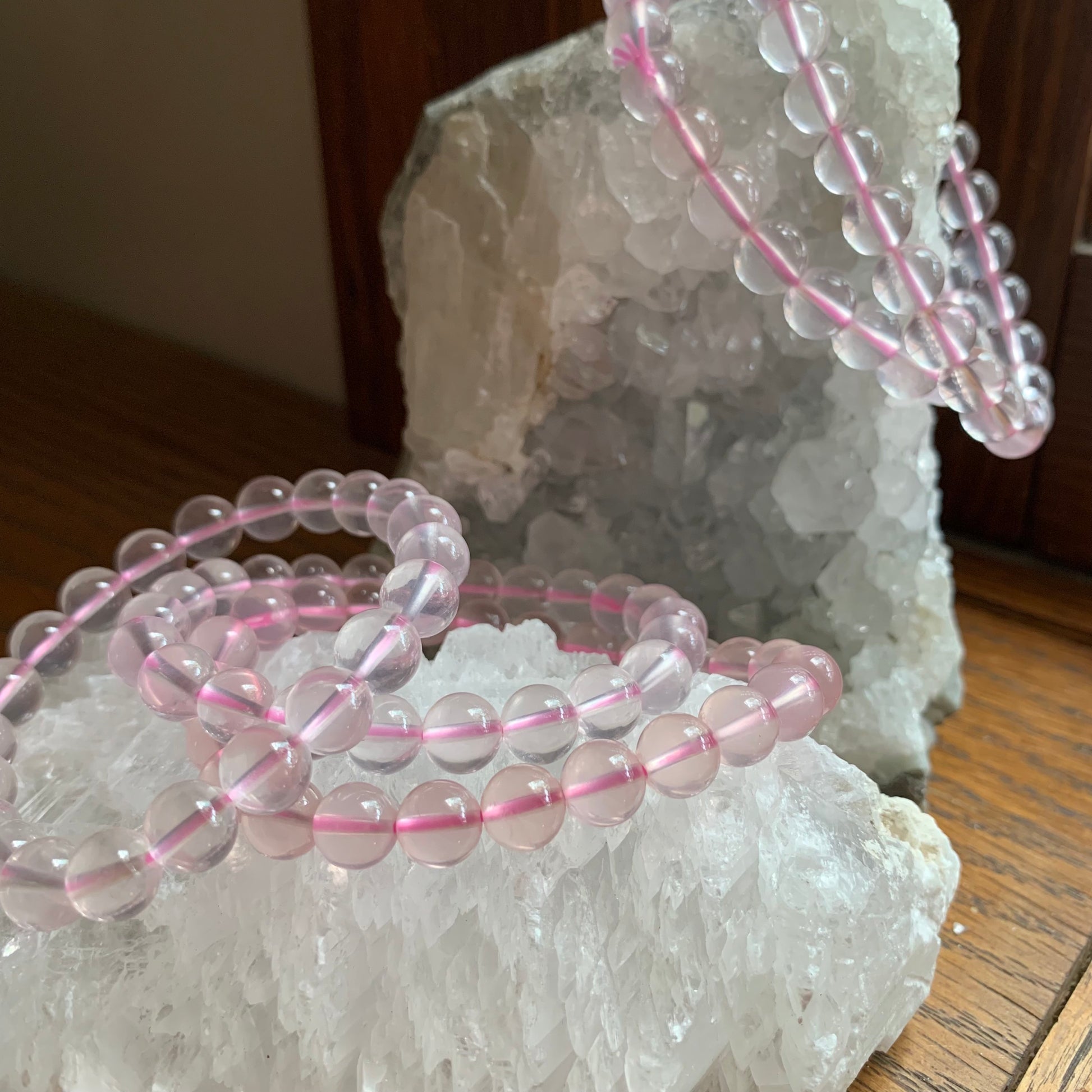 These very nice Rose Quartz beads have wonderful clarity. These are approx. 8 mm bead and 7".