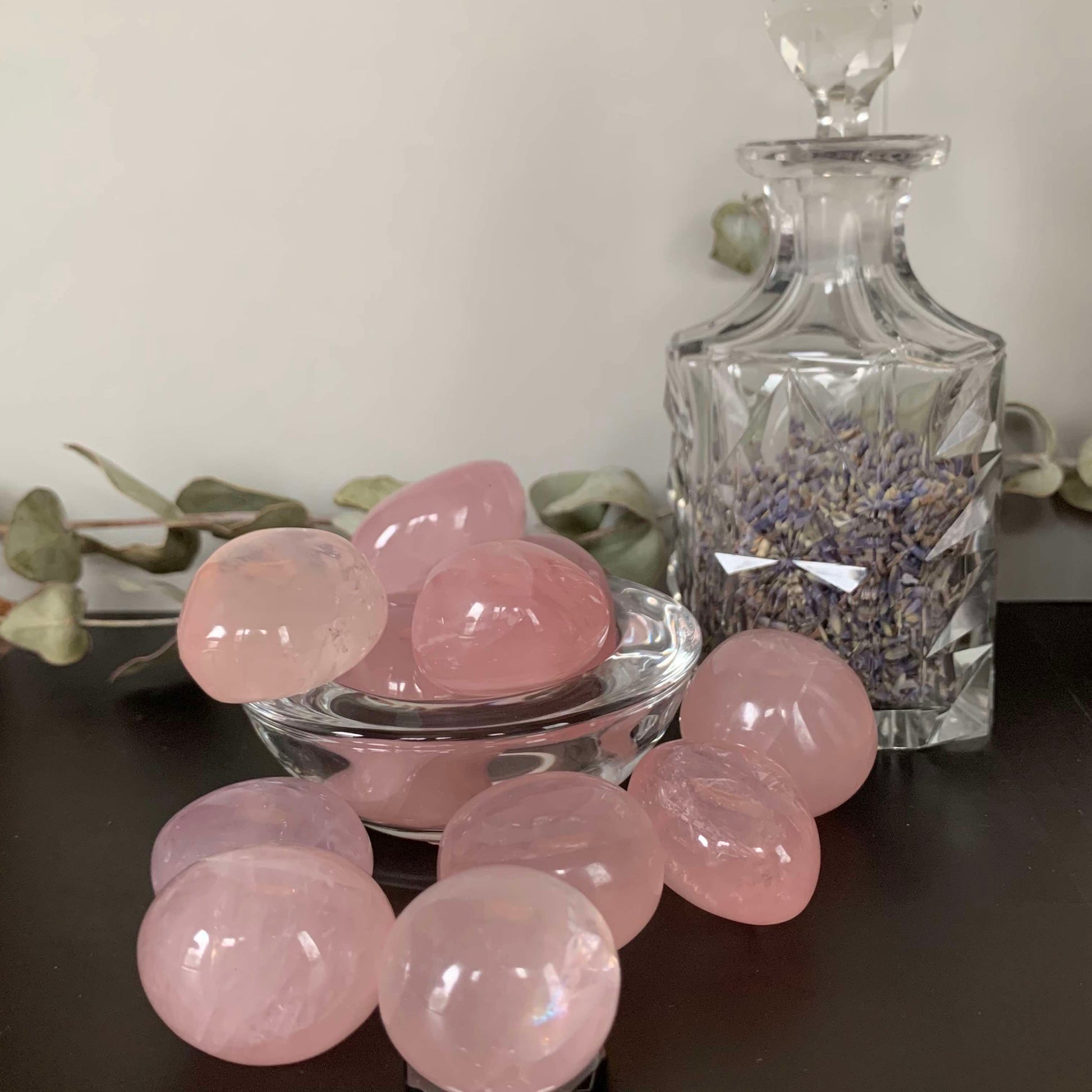 These Rose Quartz tumbles are a lovely size and from high-grade Rose Quartz. Many have rainbows and some have Golden Healer inclusions.