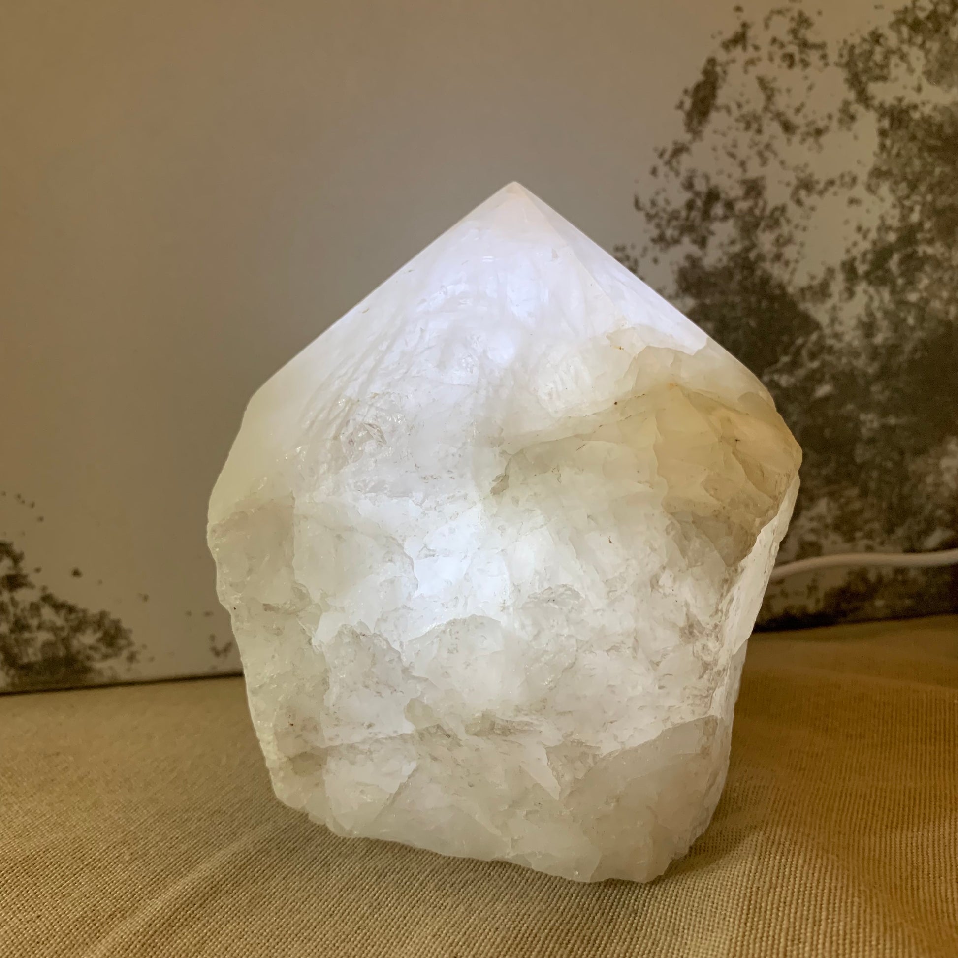 Brighten up your space with one of these Top Polished Clear Quartz Lamps. They provide a peaceful glow to any space. Each are unique. One will be intuitively chosen. They come with one LED USB plug. The are approx. 4.5" in height.