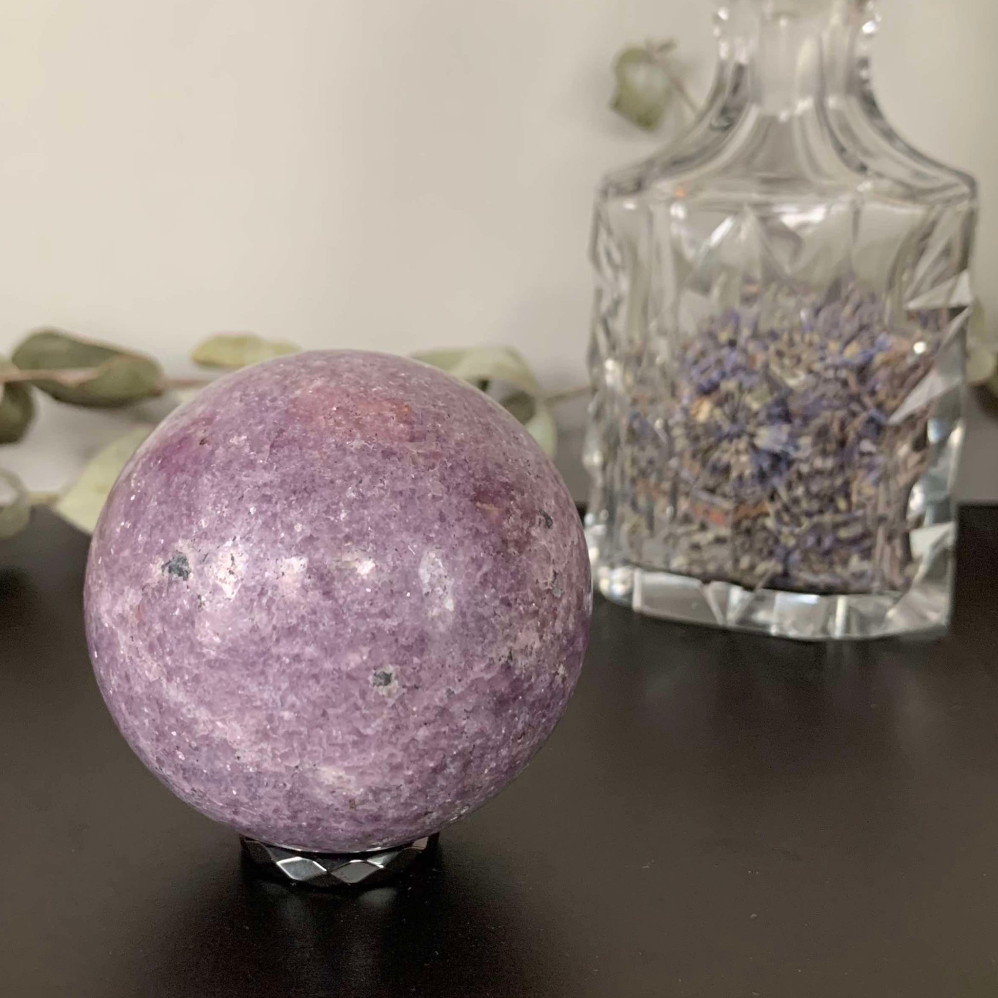 These spheres all hand selected by our team because they contain the best combination of all the stones of Unicorn Stone: Lepidolite, Pink Tourmaline, Smoky Quartz, and Clevelandite. If you are lucky, you might get a bonus of Blue Tourmaline!