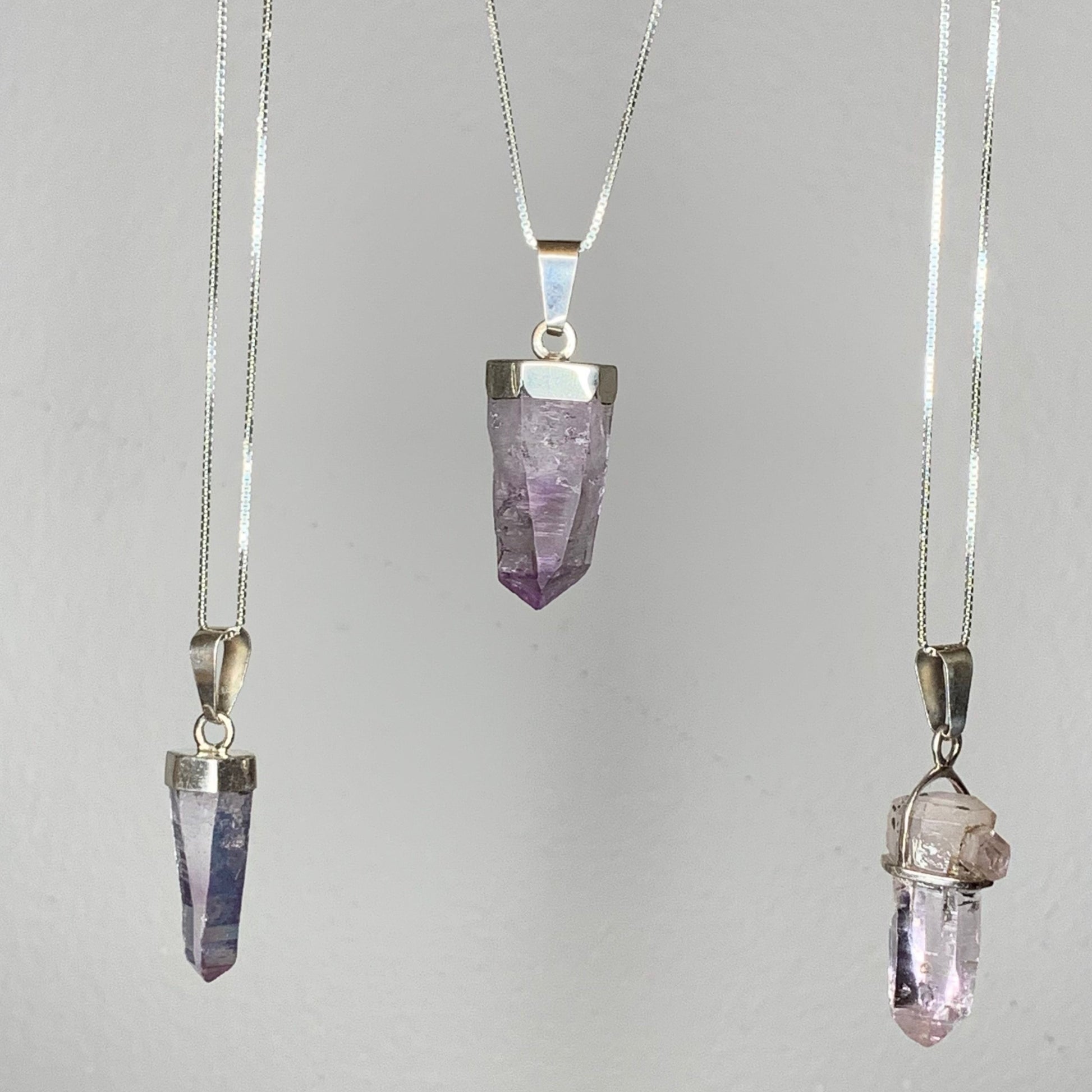 Vera Cruz Amethyst Point Pendants with Sterling Silver Box Chains // Twins, Barcodes + Unbelievable Clarity